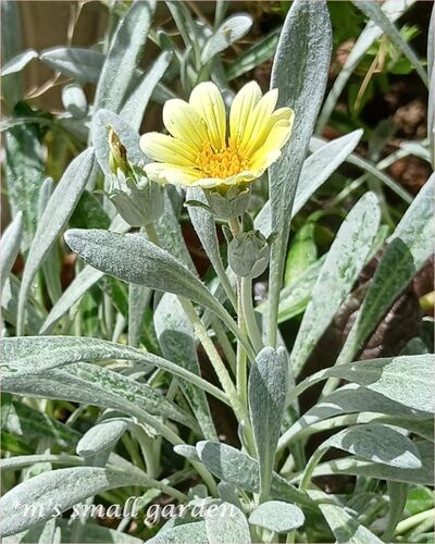 朝晩は涼しくなってきて本当に助かります。 今朝は出かける予定があって 庭仕事は水を撒く以外はほんのちょっとでした。 レモンイエローの小さめの花と シルバーのモフッとした葉が魅力の ガザニア・シルバーフォックス。 PWさんの花苗ですね^^ 真夏を越えて…