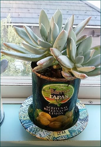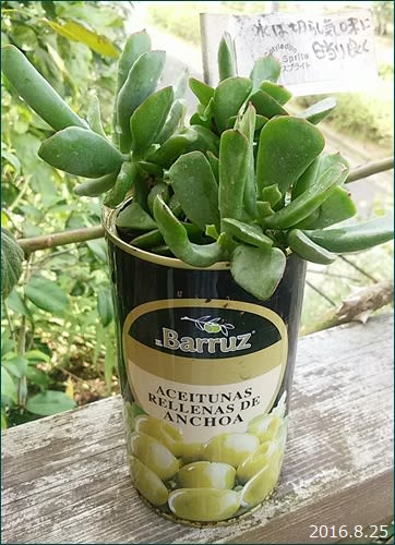 こないだのオリーブ缶のラベルで作ったリメ缶には