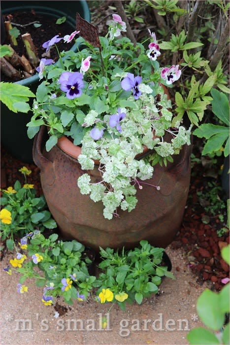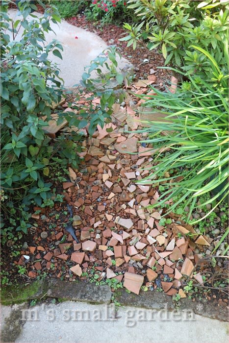壊れた鉢の素焼きの模様部分を捨てがたくてとっておいたので