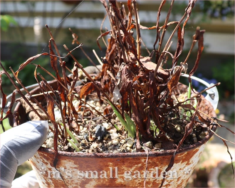 ウチョウランは冬の間は水を切って