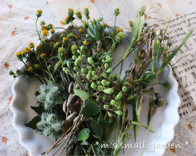 材料になりそうな実や花を少し集めながら歩きました。