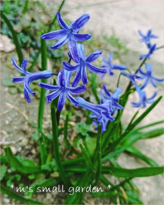 可愛い色で、、、ヒヤシンスの小さくなった球根から咲いた?