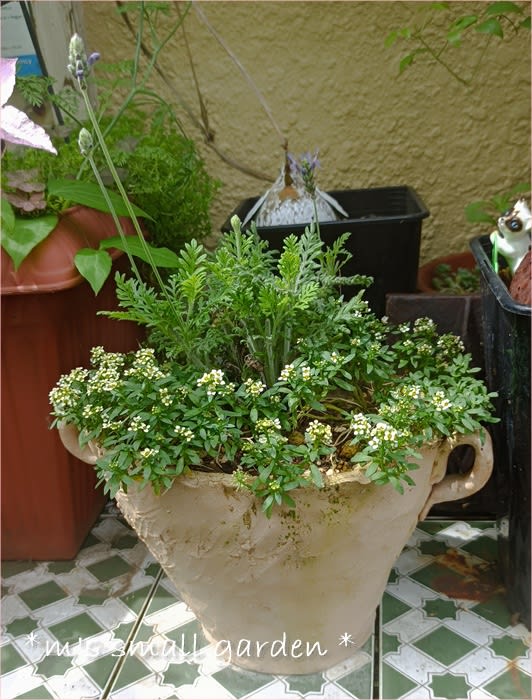 あの時の寄せ植えのまま、今はラベンダーの復活を待ってます。